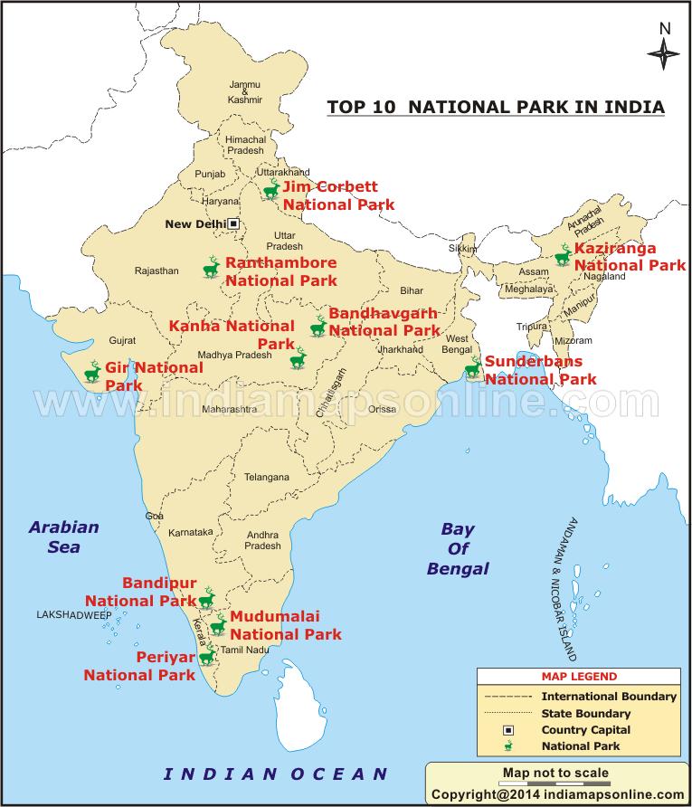 Parki narodowe w Indiach mapie